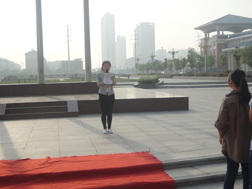 为了弘扬中华民族传统美德,建设节约型校园。2013年5月20日上午7点,由经贸系团总支学生会举办的以“建设节约”为主题的升旗仪式正式开始。仪式开始之前由经贸系金融保险班的曹小芳同学做了国旗下讲话,并向同学们提出了节约用水、节约用电、节约粮食的倡议。