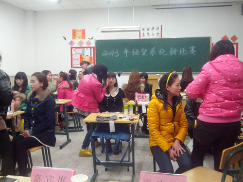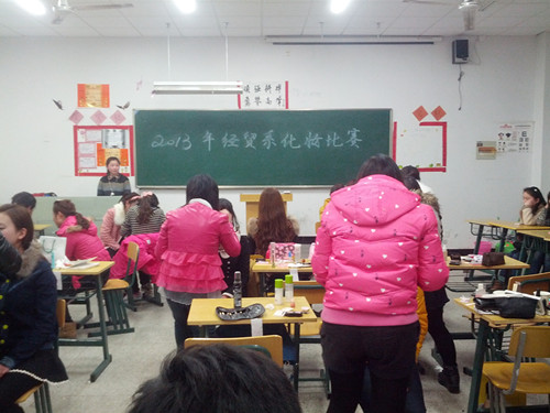 为了繁荣校园文化生活,营造积极向上的校园氛围,为大学生提供展示才华的舞台, 3月5日晚7:30,由经济贸易系团总支、学生会主办的化妆比赛在经贸系1301教室举行。