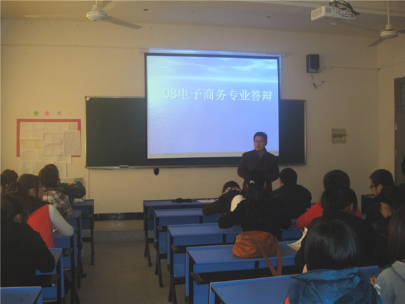 今年经贸系电子商务专业又一次在全国移动电子商务大赛中获得冠军,借着这股东风,电子商务教研室的各位老师在本届毕业生毕业设计选题方面加强引导学生研究创新性课题,特别是在毕业设计答辩环节,引入竞赛模式,促进了学生对于毕业设计质量的重视。使得今年的毕业设计和答辩取得了圆满成功。