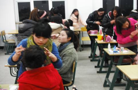 粉妆玉琢,光彩照人。为迎接第19个女生节,由经贸系学生会主办、女生部承办的经贸系化妆比赛选拔赛于2012年3月7日晚7点在1202教室正式举行。