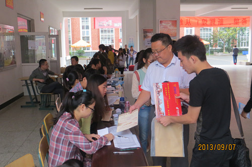(陈书记指导新生报名)