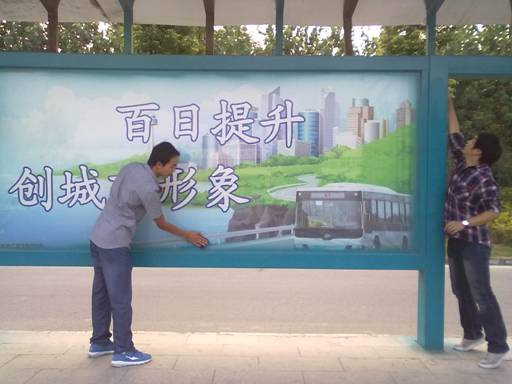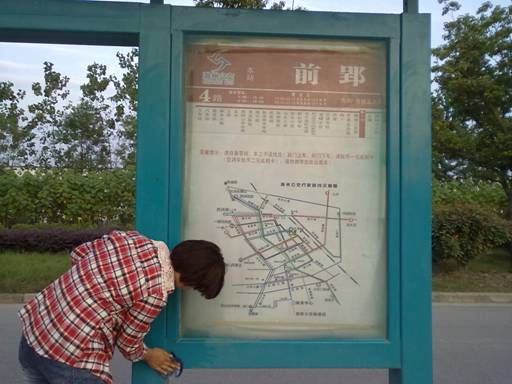 2012年9月17日上午,经济贸易系团总支又带领我系学生来到前郢和大墩公交站台,开展擦洗站台志愿服务活动。