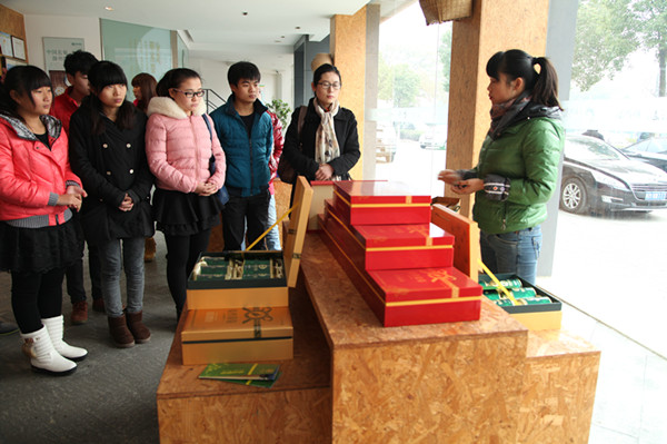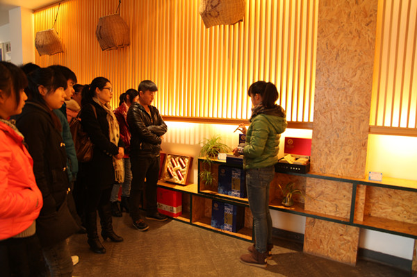 参观的第一站,学生参观了安徽菊泰滁菊草本科技有限公司营销中心,公司运营总监吴总携店员为同学们介绍了菊泰滁菊系列产品的特点及销售模式,并对该公司产品的网上销售情况为同学们做了重点讲解。