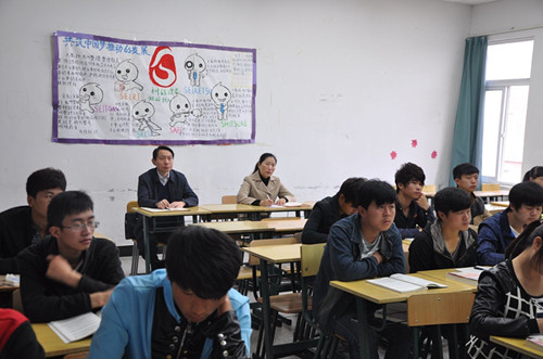 2014年4月22日,院党委书记张勇,在经贸系主任翁嘉晨的陪同下,深入课堂,及时了解经贸系教师教学的水平与质量,推门听取了曹洁老师主讲的《管理学基础》课程。