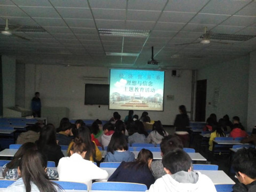 为了深入开展和培养大学生创先争优、奋发有为的精神,2014年4月27日晚,经济贸易系团总支、学生会在致真楼1119教室开展了以“大学生理念与信念教育实践”为主题的教育视频活动。