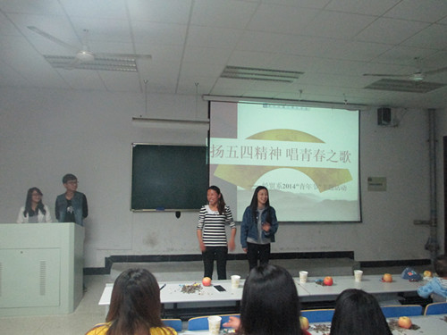 最后,13国贸辅导员许老师总结道,“青春,是生命中最美丽的季节;而青年,是人生中最关键的岁月。五四的精神是什么?我认为,应该是要与国家共命运;青春的魅力是什么?我认为,应该是能与梦想同相随。希望我们在座的每一位大学生,都能珍惜青春,不断弘扬五四精神,早日成为一名有理想,有抱负,有文化,有道德的中国好青年。