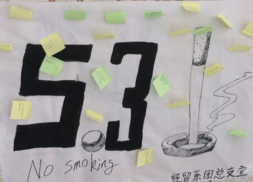 2014年5月31日是第27个世界无烟日,在团总支书记何堃的带领下,经济贸易系团总支、学生会在经贸易大厅成功的开展了“世界无烟日”公益活动。