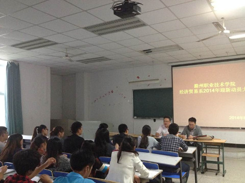 为了迎新工作落到实处,2014年9月12日中午,经济贸易系在1101教室召开了2014级迎新动员大会。会议由经贸系党总支书记陈开兵主持,团总支书记何堃和系部团总支、学生会全体成员及各班班长等参加了本次大会。