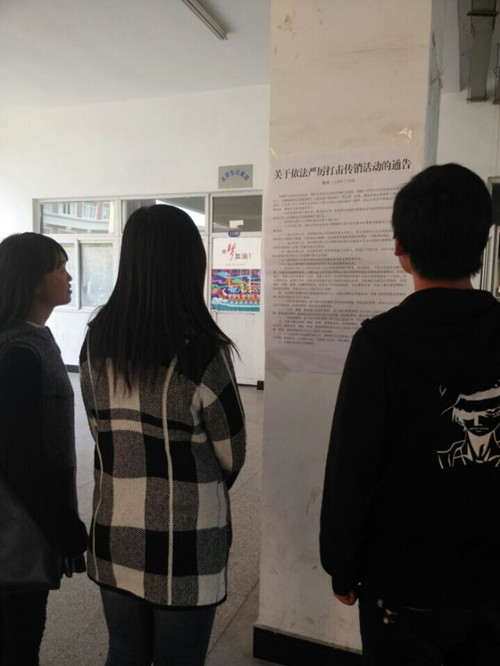 2014年11月17日,根据系党总支的安排,经济贸易系团总支学生会为了加强同学们的自身防范意识,创建一个健康的学习环境,在经贸大厅开展反传销宣传活动。