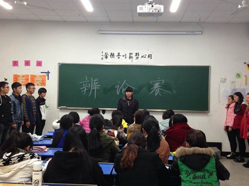 2014年12月15日,在经济贸易系党总支副书记的带领下,经济贸易系团总支、学生会积极组织14级全体同学开展了主题辩论赛,辩论赛的题目由各班负责人自由决定。