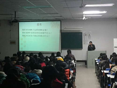 翁主任从世界富豪榜与贫困学生的鲜明对比引出话题“税收如何优化收入分配功能”。讲座主要围绕“遗产税的起源与发展,遗产税在我国的提出及经历,防止遗产税需要开征赠与税,开征遗产税给我们带来的思考”等内容。