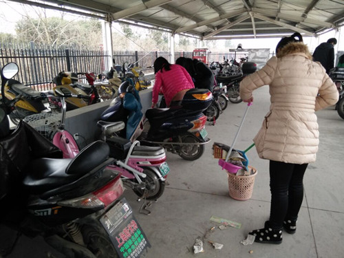活动过程中,志愿者们踊跃参与,从各班级借来卫生工具,打扫车棚的各个角落,并把乱停的车辆摆放整齐。