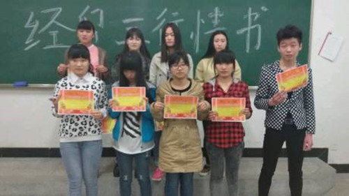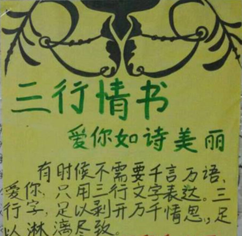 为了让同学们以创新变通的思维和灵动深情的语言勇敢表达爱,2015年4月8日晚,经济贸易系团总支、学生会开展了“爱你如诗美丽”三行情书的活动。