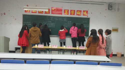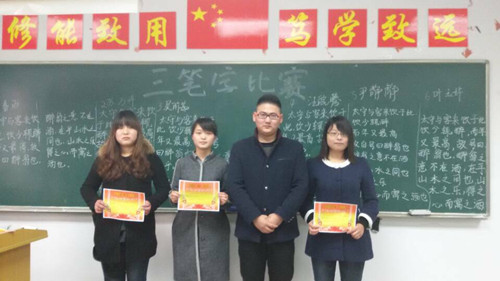 为了使同学们进一步了解中国文化的博大精深,在经济贸易系党总支书记的部署下,经济贸易系团总支、学生会于2015年4月9日中午开展了“三笔字”书法大比拼。