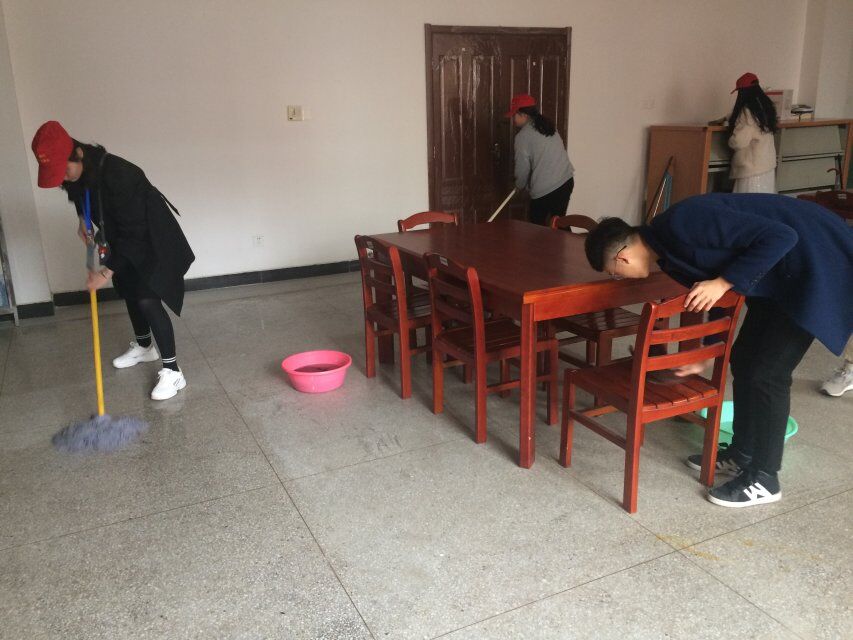 志愿者自带抹布、桶、盆、扫帚、簸箕、拖把等工具按时来到图书馆二、三层楼进行卫生打扫。活动一开始,志愿者们分工明确,书橱的各个角落无一遗漏,地面被打扫的一尘不染。在服务活动过程中,志愿者们始终保持安静,自觉维护图书馆良好读书氛围,有条不紊地整理书籍,并把书本按类别归类。同时志愿者们还清扫了地面,擦桌子,清洁柜子,书架,玻璃和门窗,为同学们营造了良好的学习氛围。