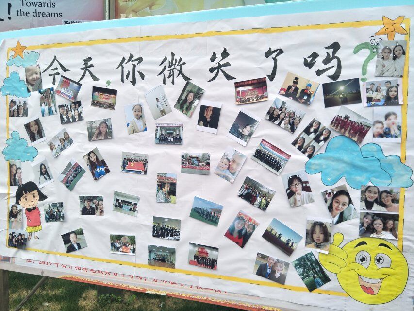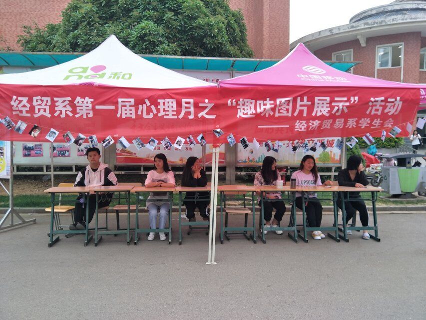 为加强同学们的心理建设,传播微笑正能量,经贸系学生会于5月15日在女生寝室一号楼下开展第一届心理月之“趣味图片展示”活动。