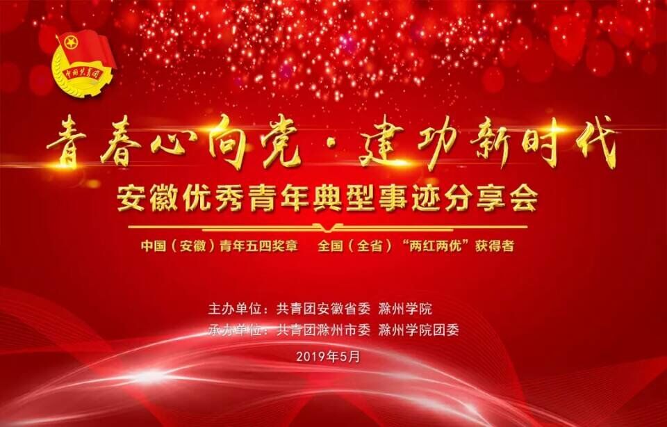 本次活动邀请了五位来自全省各地的团十八大代表、全国“两红两优”获得者、安徽青年五四奖章获得者做活动嘉宾。定远县吴圩镇西孔村党总支第一书记,十三届全国人大代表、团十八大代表、第21届安徽青年五四奖章获得者王萌萌;宿州市公安局交警支队一大队八中队负责人,第21届安徽青年五四奖章获得者赵猛;安徽师范大学2018级旅游管理专业研究生、安徽师范大学团委副书记、全国第十九届研究生支教团成员,2017年度全国优秀共青团员王阳;滁州市消防救援支队一级消防长,代表第22届安徽青年五四奖章(集体)潘五好;滁州学院外国语学院2015级商务英语专业学生,2019届安徽省品学兼优毕业生,2018年度安徽省向上向善好青年获得者戴雨晴。