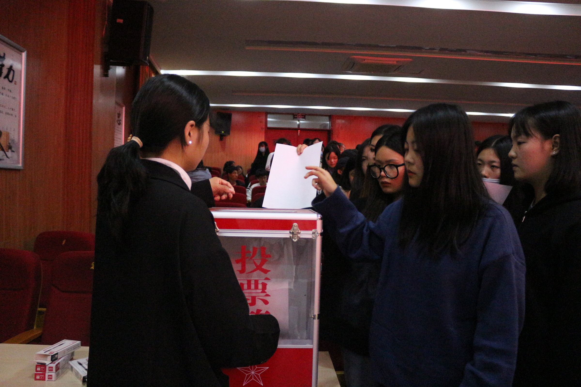 此次大会由刘娜主持。大会共有27名候选人,通过投票的方式选举22名,淘汰5名。会议通过学代会总监票人,由大会筹备小组提名,石馨怡为学代会选举总监票人,时雪阳为学代会选举监票人,刘蓓蓓为学代会选举总计票人,王亚杰为学代会选举计票人。接着代表开始填写选票,由学代会监票人、计票人进行计票并宣读得票结果,会议圆满结束。