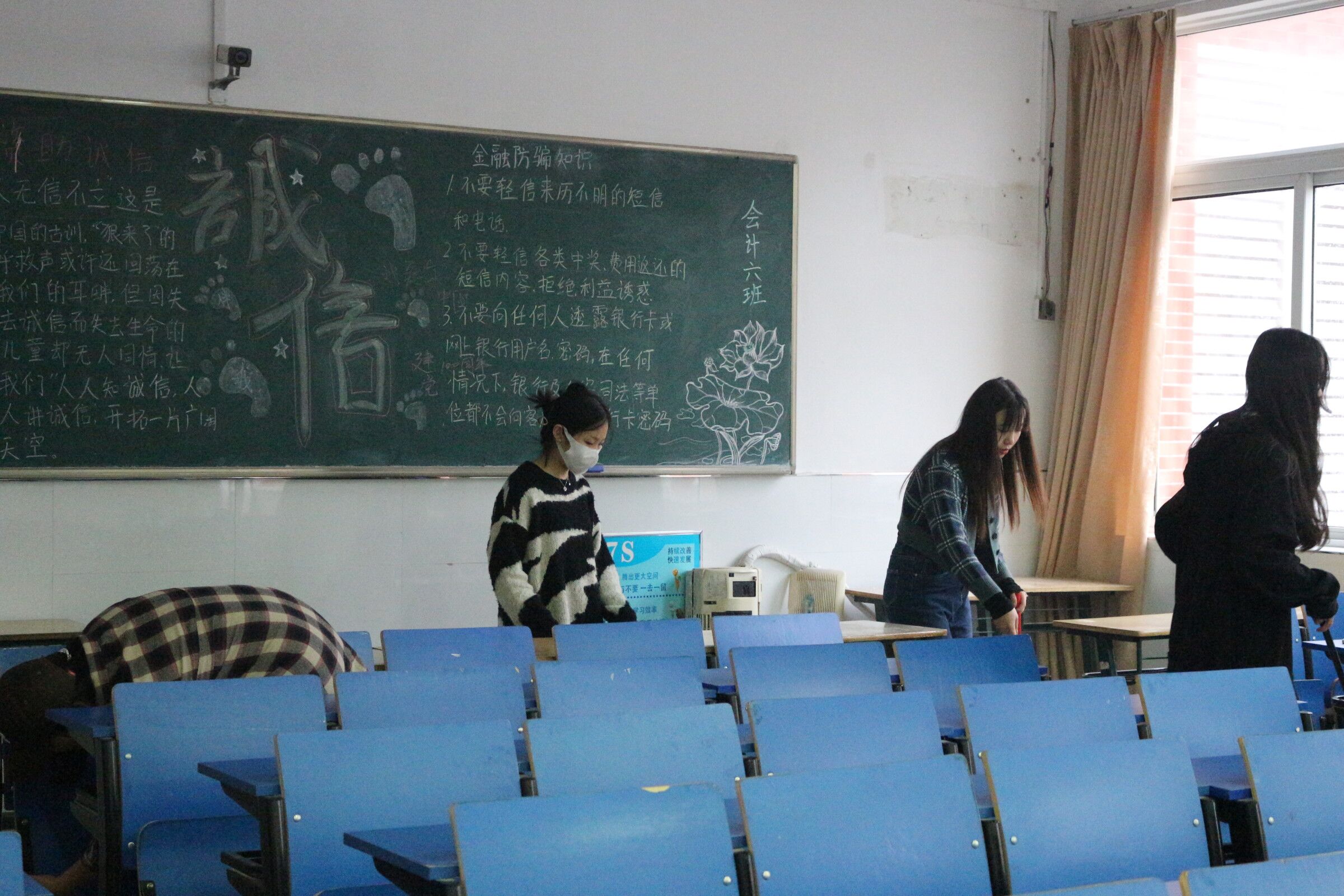 10月20日下午3点,管理学院在致真楼开展校园文明创建——教室卫生大扫除活动。