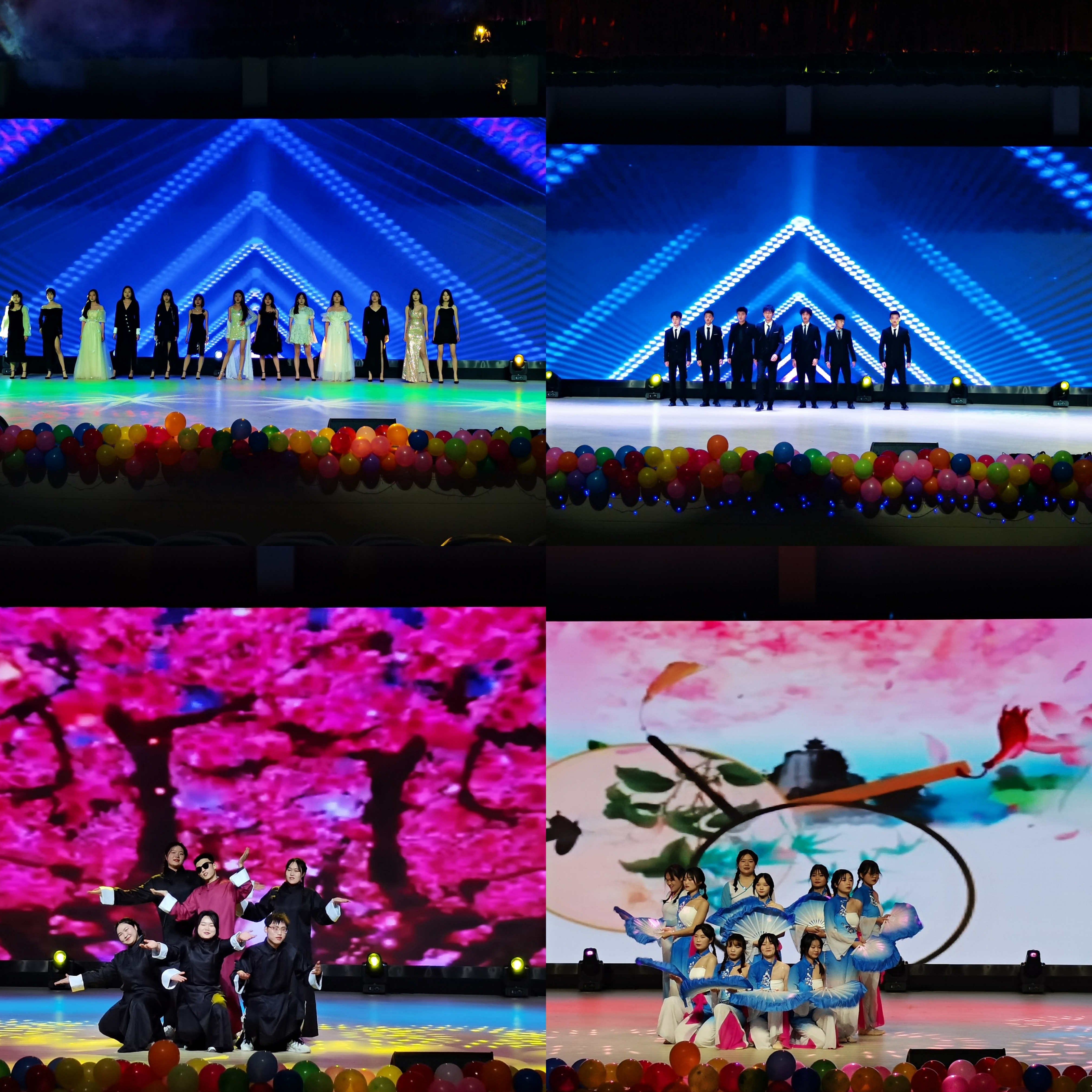 晚会共分为三个篇章,首先出由学院艺术团带来的开场舞《开门红》,当振奋激昂乐曲响起,锣鼓声与绸缎舞相得益彰,随后的红灯笼更像是红色的火焰,点燃了舞会的气氛。随后歌舞《年轮》和《芒种》,将现代的动感与传统的优雅完美结合。手语表演《与你》,同学们的动作整齐划一,自然优雅,向我们传达的人与人之间的大爱无疆。此后爵士舞《hippop》出场,炸裂的音乐与炫目的灯光配合着舞者亮眼的舞姿,让我们感受到了年轻人的律动。随后进行的是第二篇章的表演,此篇章以名为《青春中国》的朗诵、名为《党·亲爱的母亲》的红歌串烧、名为《迈向新时代》的小品、名为《不忘初心》的大合唱构成,庆祝我党百年华诞,为党引吭高歌,晚会气氛被推至高潮。在第三篇章中,流行歌曲演唱、古典舞表演、T台走秀相继出场,带给了观众们别样的观感。晚会的最后,演员们以欢乐的舞蹈剧《桃花朵朵开》,为大家送去了新春的祝福,赢得了网友们的点赞。