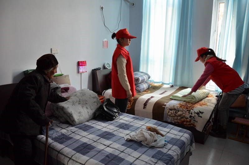 21旅管2班徐诗怡同学在江苏省盐城市亭湖区步凤镇养老院,帮助老人们打扫房间、为老人们洗头,陪他们度过一个欢乐吉祥的中国年。