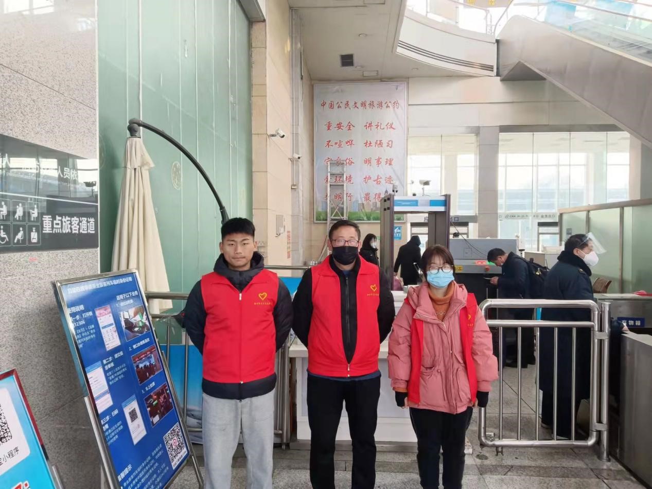 20会计7班曹文虎同学是一名充满爱心的青年,寒假刚开始,他就报名参加了“暖冬行动”志愿服务。正值“春运”高峰期,他坚守在滁州北站进、出站口,提醒乘客们正确佩戴口罩,注意疫情防控措施,并热情地帮助过往旅客解决问题和困难。他认为参加志愿服务活动,不仅能够让自己迅速成长,更能够让他人感受到来自身边的温暖与善意。