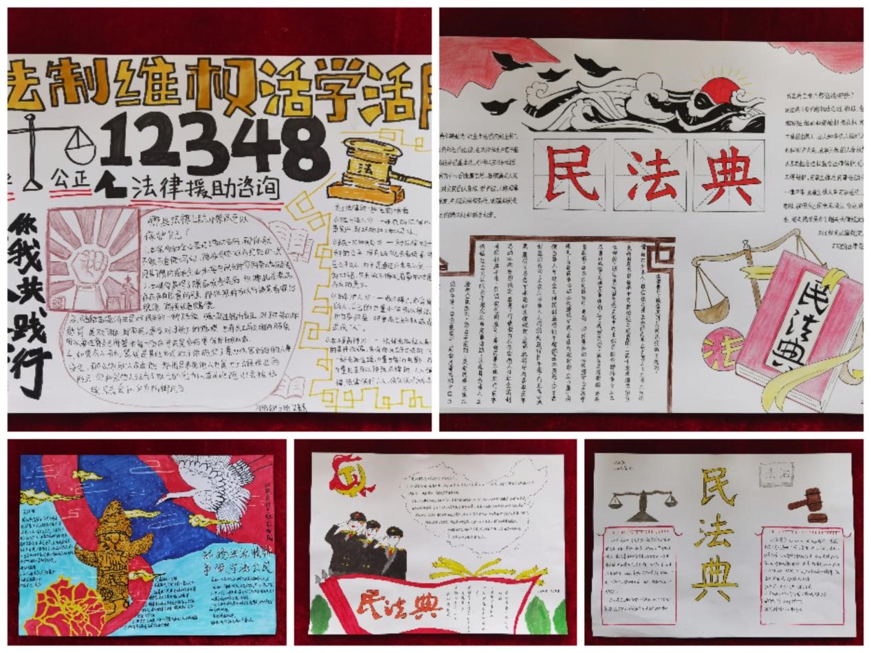 为营造宣传氛围,增强学习效果,学生会开展了一期以“民法典在身边”的手抄报活动,旨在积极营造知法、学法、用法的浓厚氛围。