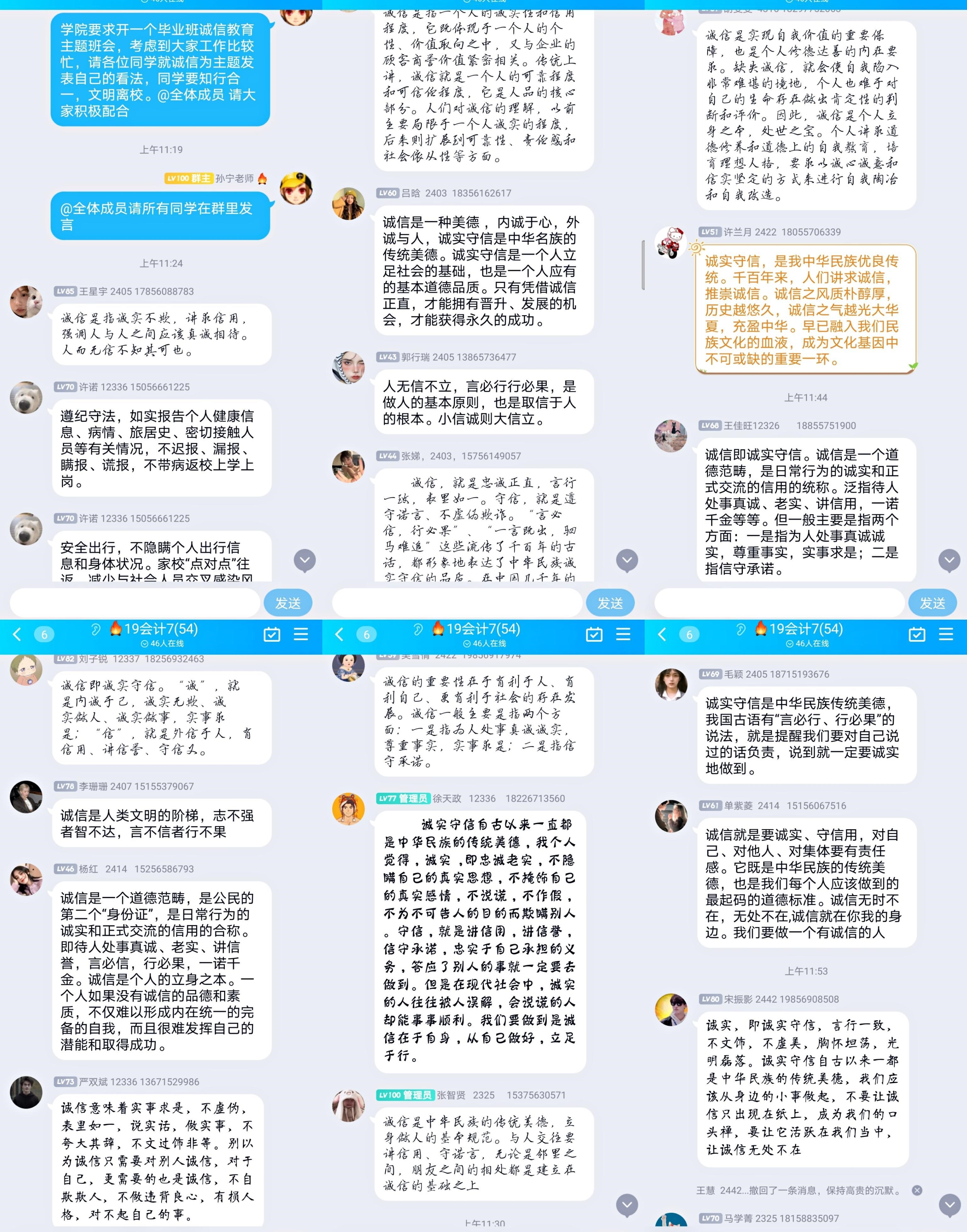 本次活动以“资助育人”为核心,其中大一、大二各班级辅导员重点向同学们介绍了国家及学校有关资助政策,帮助同学们了解现有的资助项目,鼓励同学们努力学习,自立自强。大三各班级辅导员以线上的形式开展毕业生诚信主题教育,强调毕业生助学贷款确认相关事宜,引导学生知行合一、文明离校,帮助学生树立良好的诚信观念。