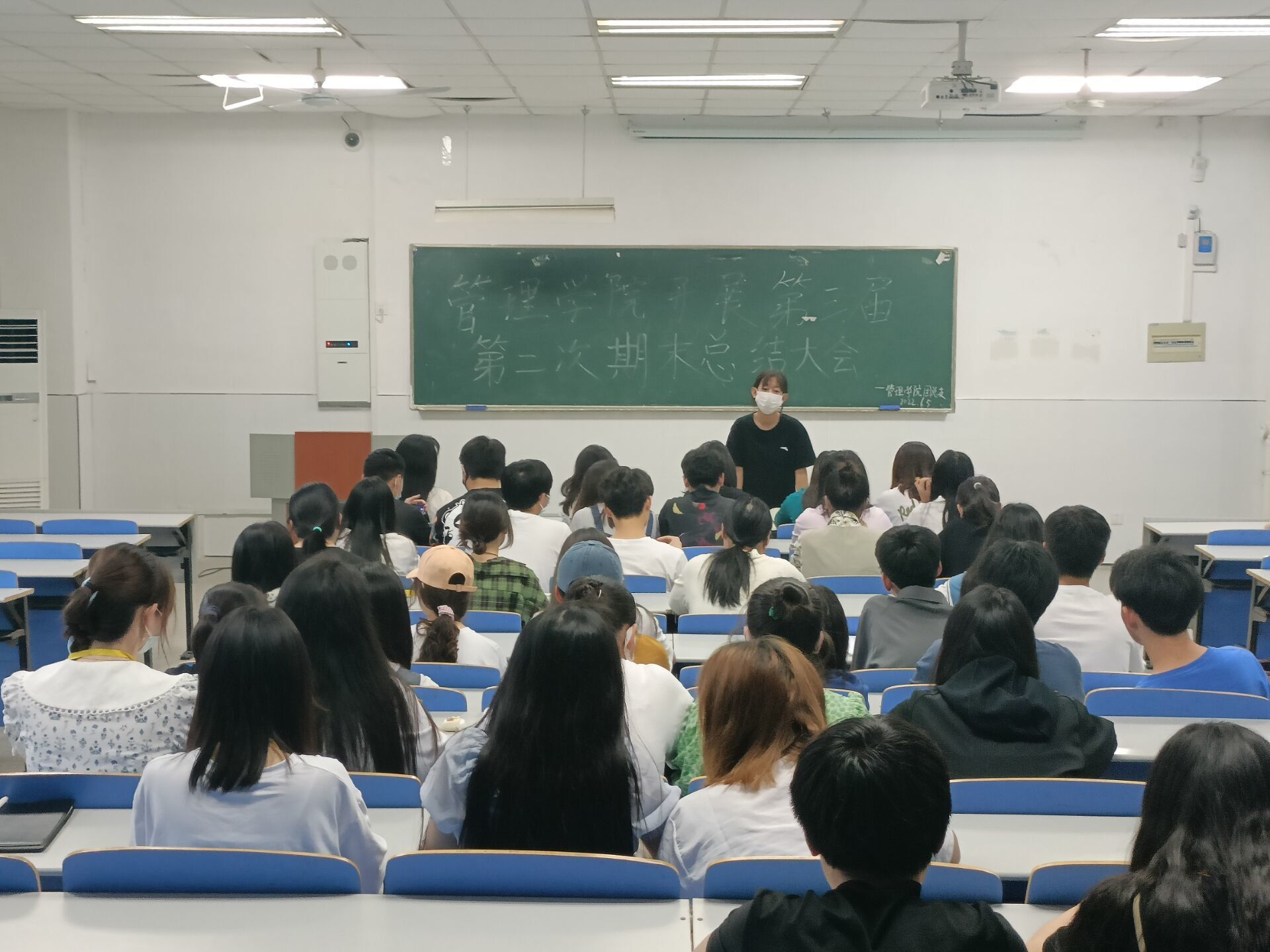 awc777万象城娱乐官网管理学院团总支于2022年6月5日晚18点整在致真楼1102教室开展管理学院团总支第三届第二次期末总结全体大会。本次会议由管理学院团总支副书记罗颖主持,团总支全体成员参加。