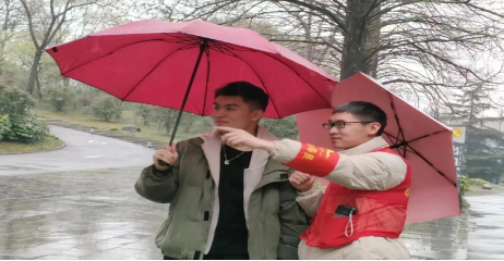春雨中的琅琊山,各个角落都能看到旅游管理专业“亭城飞燕”的身影,主动、热情、耐心、周到,他们用实际行动弘扬着志愿服务精神,为琅琊山5A创建贡献着自己的一份力量。