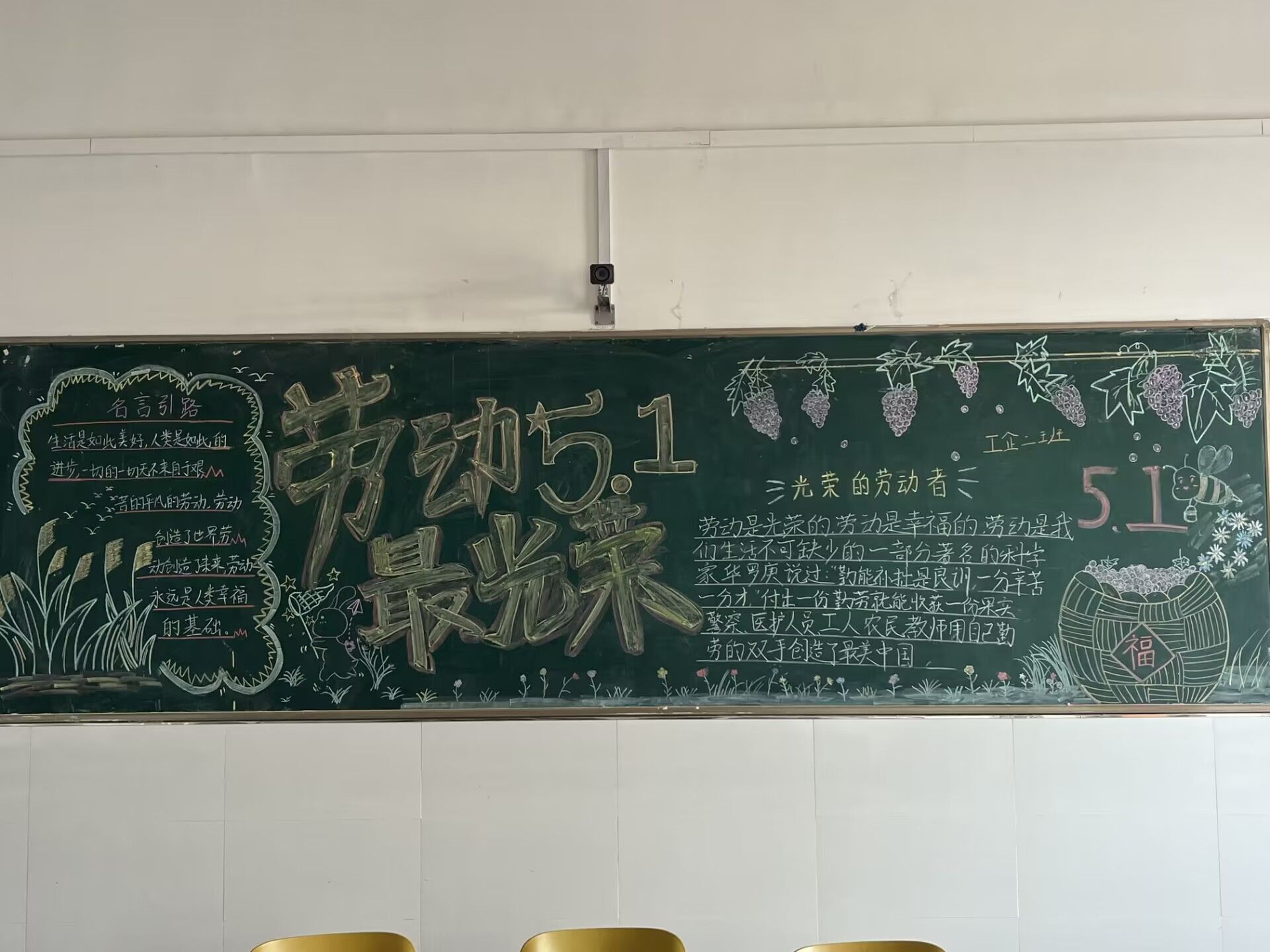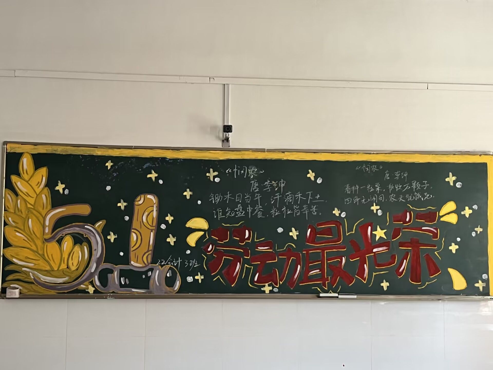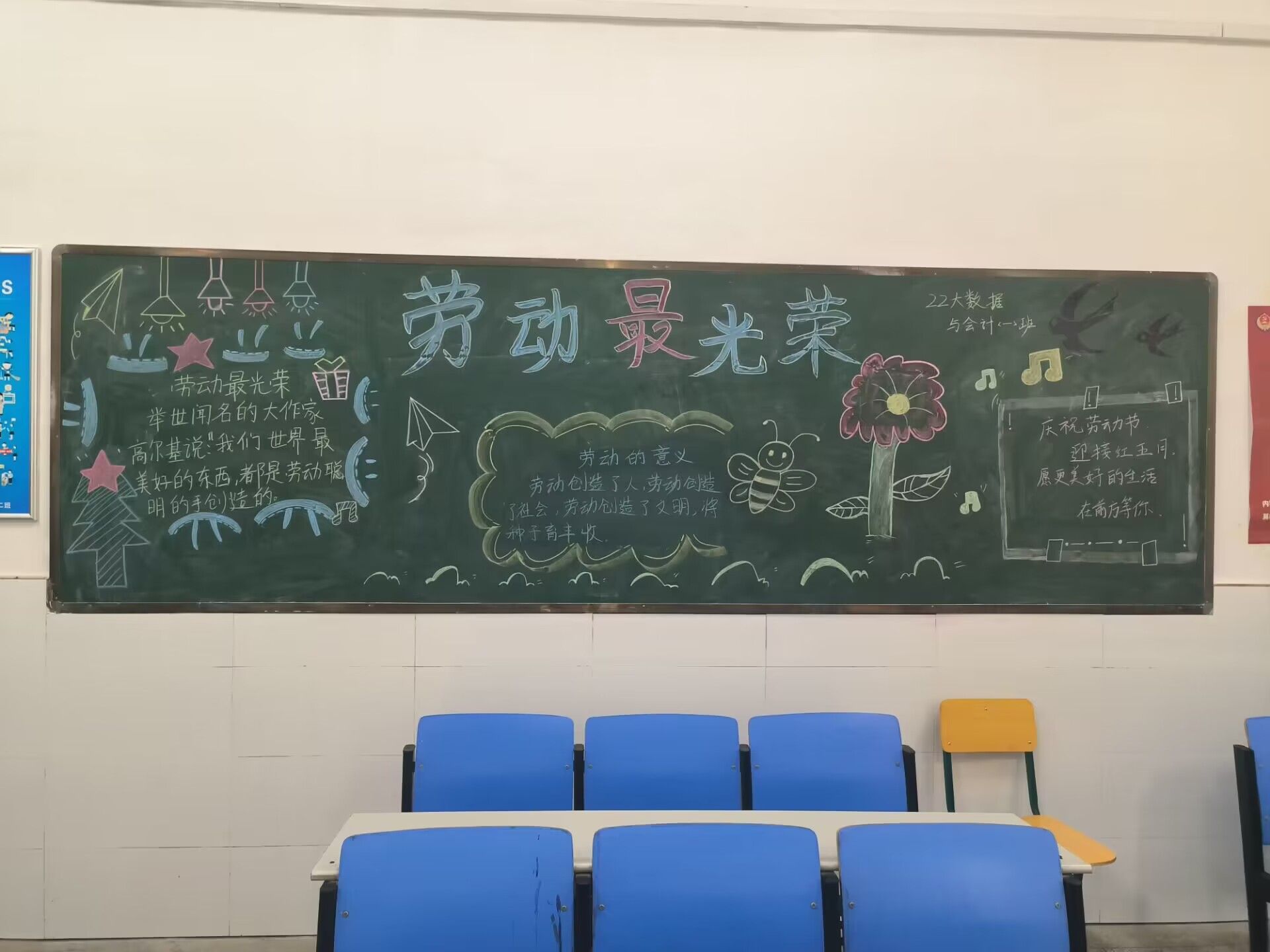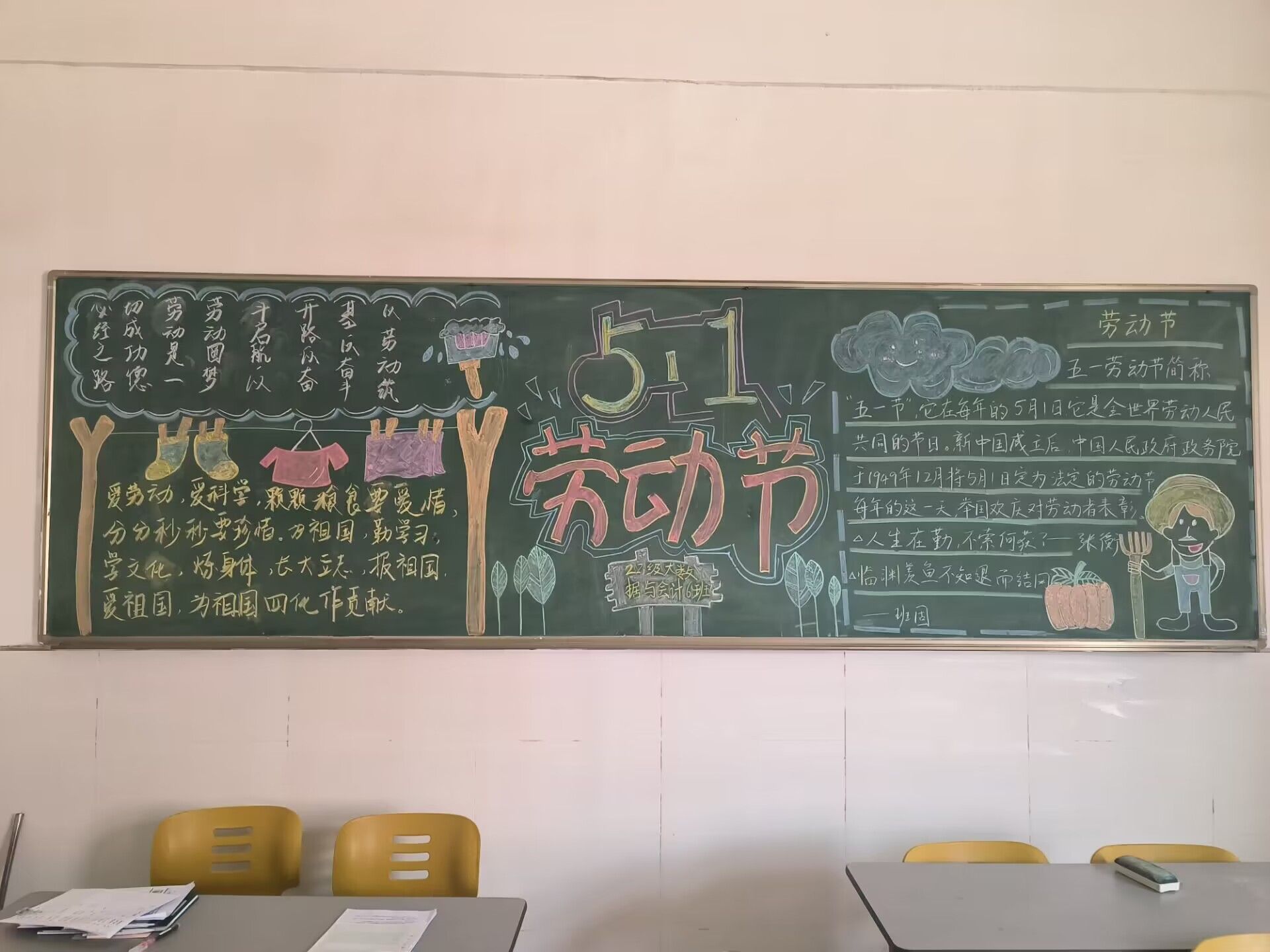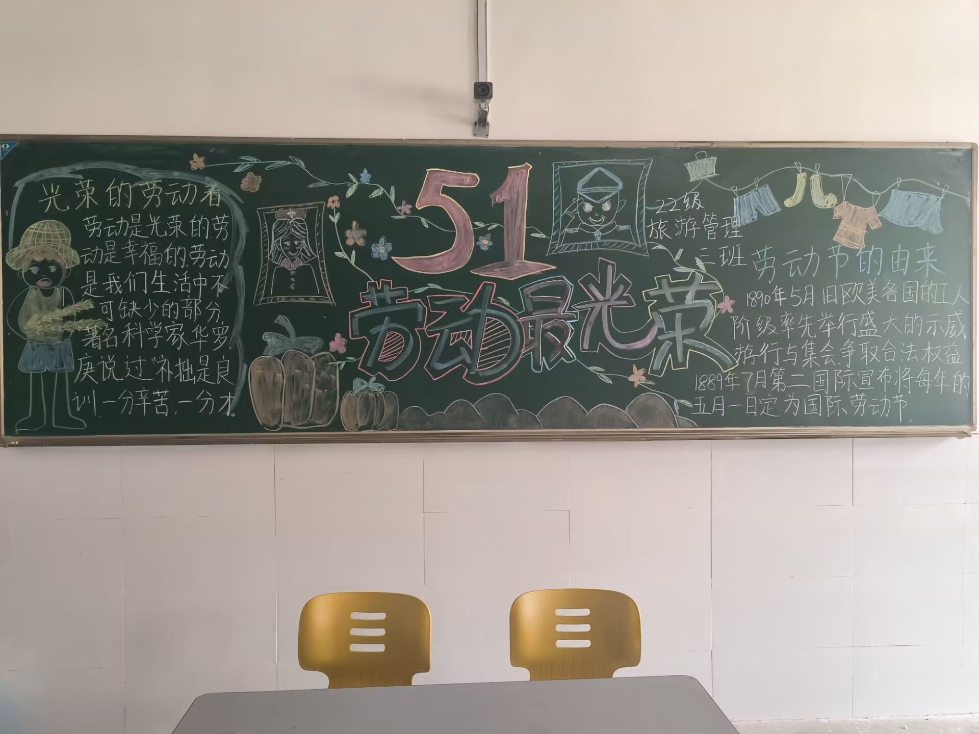 五一劳动节是一个纪念工人阶级的节日,也是一个表彰劳动者的日子。管理学院学生会举办“劳动勤于手,美德践于行”黑板报绘制活动。