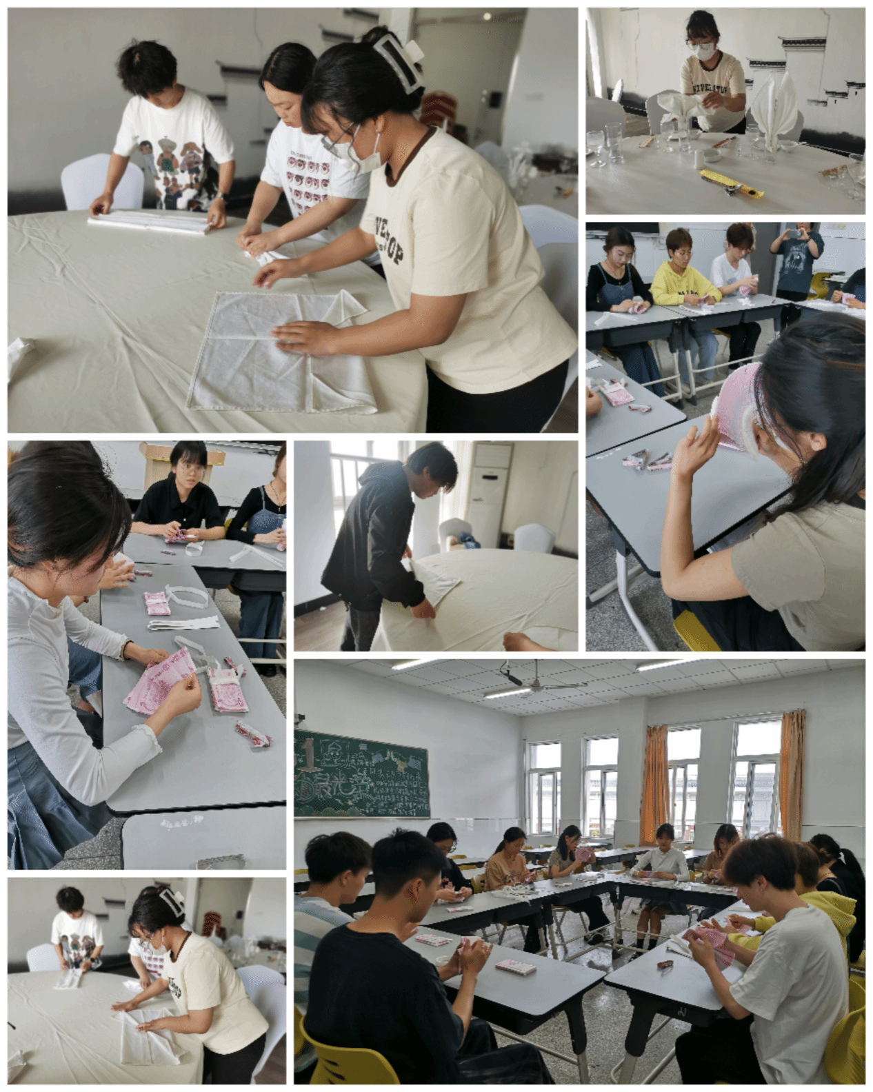 活动中,21级旅游管理专业的同学,通过自己平时的专业课实践,向大家展示了餐桌餐花的折叠与摆放,通过专业劳动生动的诠释了劳动的价值——劳动创造美好生活;21级财务管理专业的同学,通过娴熟的手法,向大家展示人工点钞的不同手法;22级各班学生用色彩描绘出一幅幅生动的画卷——不同主题的黑板报展示;22级各班有序开展:扮靓宿舍,清扫生活区、教学区、办公区卫生等。