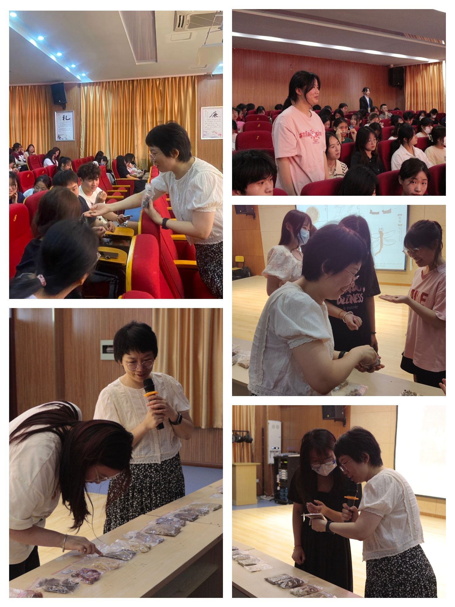 活动邀请滁州市中西医结合医院治未病科傅裕主讲。活动开始时,先介绍了中医药学的起源以及中草药的分类和记载的草药种类。同时在大屏幕展示了一些中草药的图片以供同学们了解,介绍了滁州有哪些中草药。我们说熟知的传统节日端午节就有吃粽子、插艾叶、配带香囊等风俗,其中也蕴含着许多中医药学理论。活动最后,医生给大家发香囊,现场教同学们如何闻香识草药,大家纷纷表示受益匪浅。