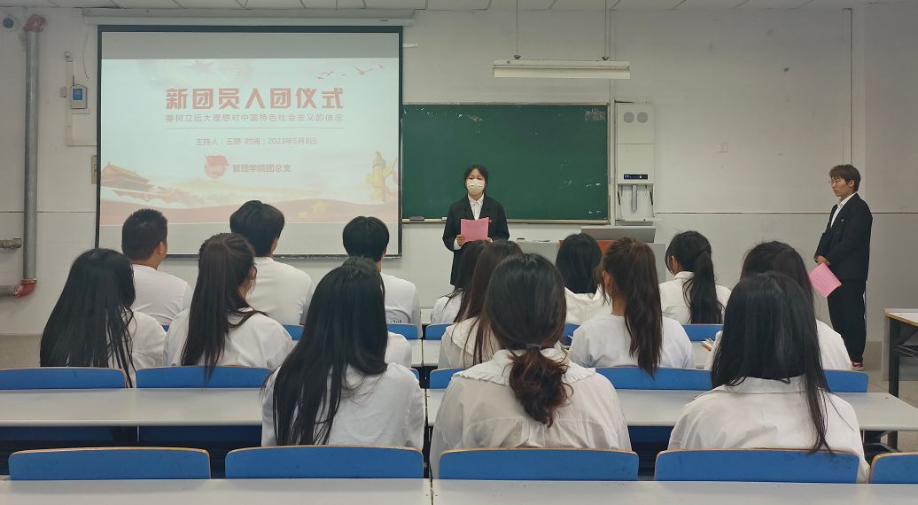 为壮大学校团组织力量,培养青年对党和国家的深厚感情,进一步增强广大共青团员的组织意识和爱国意识,管理学院团总支于2023年6月9日中午11:40在致真楼1101教室举办新发展团员集中入团仪式。本次活动由团总支干事王婷主持,管理学院全体新发展团员参加。