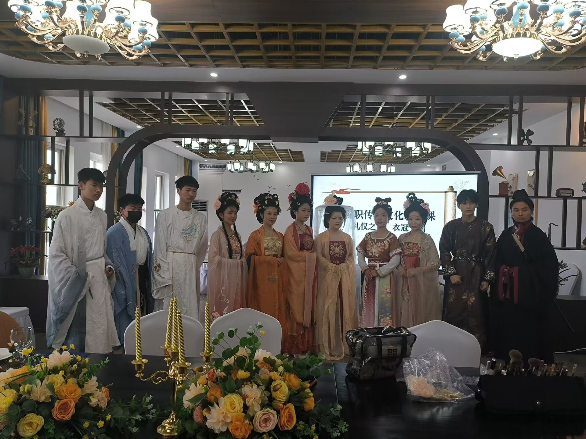 本次上课以唐制汉服为主要内容。老师先从唐制汉服的类型和特点切入,再讲述历朝历代礼节、汉服特点及其背后沉淀的历史背景和文化渊源。同时,现场根据大家身着的汉服,精心介绍不同朝代所表达的含义及深刻影响。同学们峨冠飘带,衣袂飘飘,尽显书香古风,以实际行动弘扬传递传统文化,得到老师的赞扬。