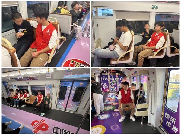 活动的过程中,我院志愿者们以一对一的陪同方式,从星星家园准时出发。在琅琊山地铁口,志愿者们积极组织星星的孩子们排列好整齐的队伍,协助他们乘坐电梯、扫码进站,并陪同他们一起候车。上车后,志愿者们始终秉持着“文明乘坐,轻松体验”的宗旨,安排星星的孩子们各自坐在相应的座位上,不大声喧哗,不随意走动,不吃食物,也不追逐打闹。星星的孩子们沿途欣赏了滁州快速发展的城市风貌,以一种全新的乘坐方式体验了欢乐的乘坐时光。