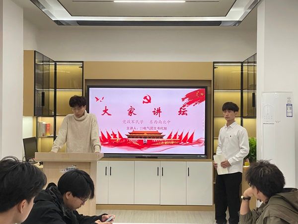 11月6日晚,我院团青学堂第一期活动正式举办。第一期由23电气班团支部书记代旭主讲,他面向支部学生讲授《中国共产党领导是中国特色社会主义最本质的特征》这一篇章,分别从历史角度、国情角度充分论证了这一观点。随后带领了支部成员从学习强国端口观看【每日一习话】之当代青年要在实现民族复兴的赛道上奋勇争先,并从青年视角、青年思想组织支部成员分别上台交流发表心得感悟。历史和现实都告诉我们,中国特色社会主义是近代以来中国人民对其他救国途径的尝试全部碰壁之后做出的历史性选择,是中国共产党领导人民历尽千辛万苦、付出巨大代价取得的根本成就。青年学生纷纷表示,只有坚持党的正确领导,中国人民才能从根本上改变自己的命运,才能取得举世瞩目的伟大成就,才能迎来伟大复兴的光明前景。