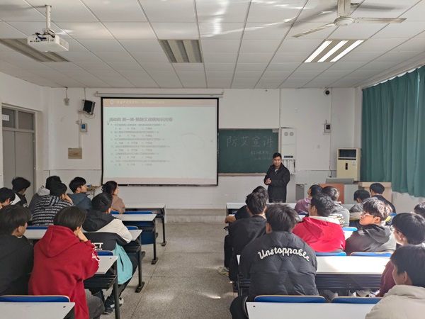 本次宣讲活动由我院学生会主席周宗杨主讲。主要讲解了目前艾滋病的发展趋势和防控艾滋病的重要意义,随后通过PPT形式讲解艾滋病的传播途径、早期症状和和预防措施,同时以知识问答、问卷测试形式,加深同学们对预防艾滋病相关知识的认识。同学们纷纷表示艾滋病离自己并不遥远,要提高预防能力,并善待艾滋病感染者,做一个艾滋病预防的宣传员和志愿者。