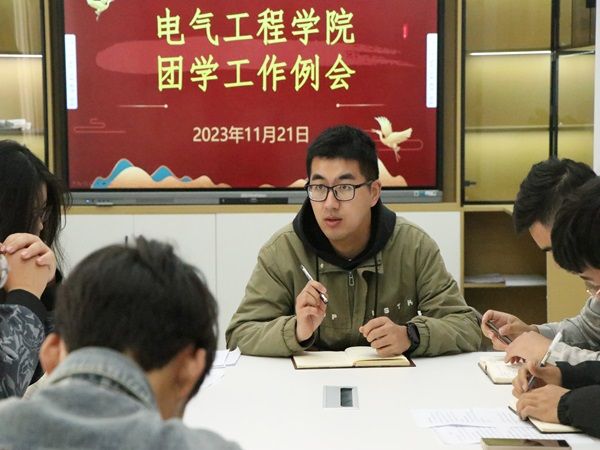 会议伊始,由团总支副书记张梦梦、学生会主席栗豪做月度工作报告,分别从思想政治学习、团学活动开展、社会实践服务等层面做简要报告。随后,由办公部部长崔文兵、刘邦杰分别宣读团总支、学生会12月份工作计划,确立工作重点,提前策划布置。最后,由我院团总支负责人臧铭老师做进一步总结部署。他指出,团总支、学生会是电气工程学院学生群体的先进代表,在日常工作中各位成员既要有责任意识,发挥好表率作用,也要有服务意识,深入基层学生团体了解学生诉求,同时,也希望大家能够在服务中提升和锻炼自己,促进自身的全面发展,并要求各部门要注重学习培训,拓宽服务范围,夯实责任落实,为建设更好的团学组织而不断团结奋斗。