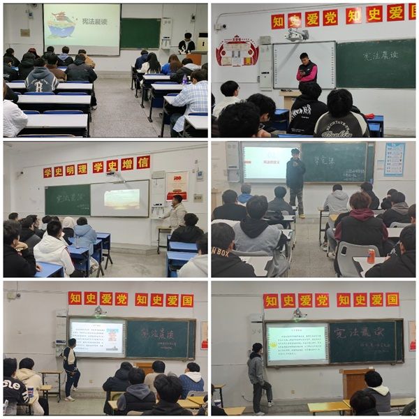 11月23-27日,23级各班团支书带领支部学生在指定教室开展宪法晨读活动。活动伊始,由各班团支书领学宪法的基本内容与涵义,在初步了解后,领读宪法赋予的权利、规定的义务、对中国公民的意义等内容。各支部学生认真聆听,专心致志,并以整齐划一的声音跟读,充分体现了新时代青年学生乐学、好学的热情,也展示我院青年学子对宪法的尊敬。
