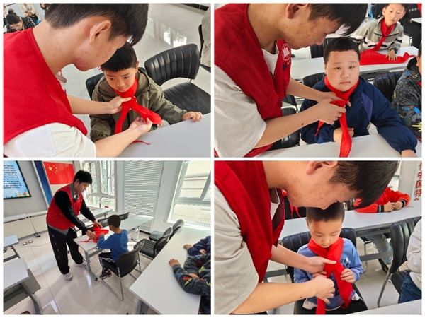最后,团员青年志愿者们又带领社区青少年学生重温了红领巾的标准系法,并且告诉学生们红领巾的含义是少先队员的标志,它代表红旗的一角,是用革命先烈的鲜血染成的。这不仅象征着正义、光荣和勇敢,还代表了爱国主义、团结友爱以及勤劳、勇敢、奋发向上的精神。