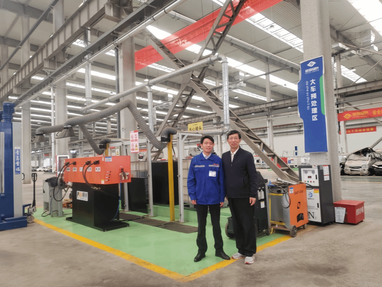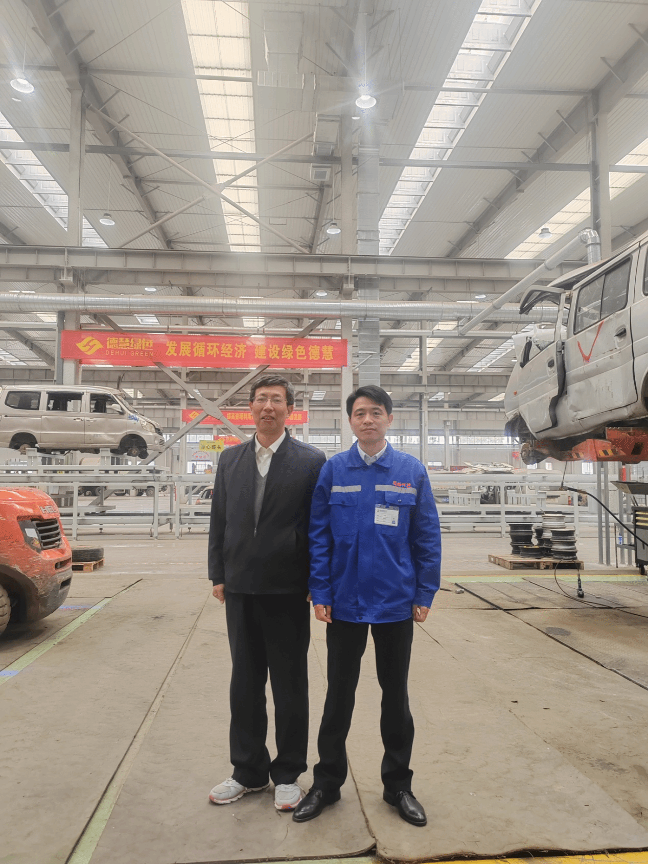 安徽德慧绿色环保有限公司成立于2021年5月,是一家专业从事机动车回收及综合利用、汽车零部件及配件制造、新材料技术研发、新兴能源技术研发的科技型企业,是安徽超越科技环保股份有限公司的全资子公司。超越公司副总经理范敏热情接待了张信群来访,并陪同参观了生产车间。