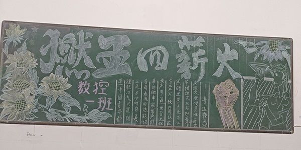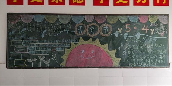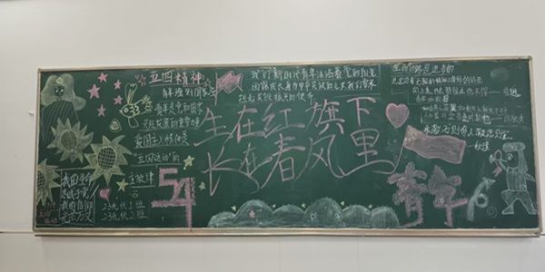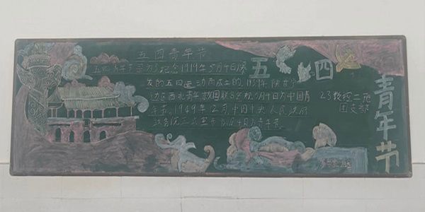 活动伊始,各班团学干部带领学生紧紧围绕回忆五四往昔,敬青年热诚这一主旨精心设计。在活动现场,同学们积极踊跃地参与进此次板报设计活动中,从版面设计、板报内容、书写绘画三个方面将自己对于五四精神的感悟与见解融入其中。用彩色的粉笔勾画出一幅幅蓬勃向上的板报,用萤火般的热血汇聚五四青年的精神,将红色元素注入笔尖,将五四使命传承心底,活动在同学们澎湃的热情中圆满落幕。