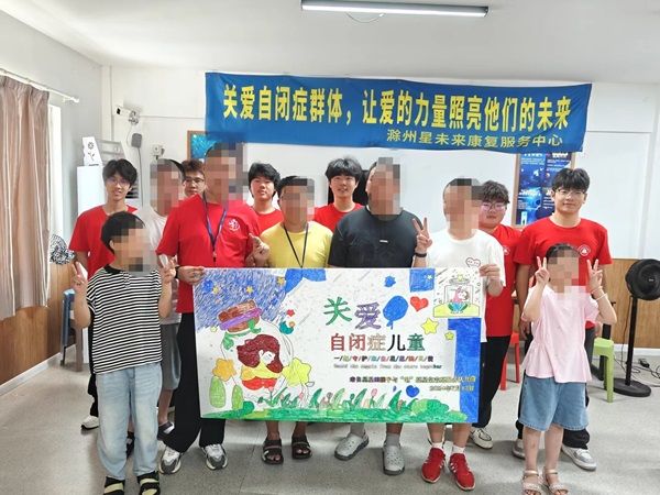 7月15日,“电”亮星空志愿服务队赴陈桥社区星未来孤独症康复机构,以趣味涂鸦的互动教学方式开展普通话推广的教学实践活动。活动伊始,我院志愿者以一对一的教学帮扶方式,指导星星孩子们在素描KT板上进行涂鸦填充。素描板上的内容为我院志愿者自主设计的“关爱自闭症儿童”动漫图片,“他们眼睛明亮,却不与你对视;他们虽有言语,却不与你交流;他们听得声响,却不与你互动;他们表达情绪,却不与你共情......”。在志愿者的悉心指导下,星星孩子们纷纷用蜡笔描绘着孤独症群体的人生真情写照,他们用五彩斑斓的蜡笔丰富了孤独症群体灰白的精神世界。涂鸦过程中,星星孩子们真情互动,并共读涂鸦主题“关爱自闭症儿童”。