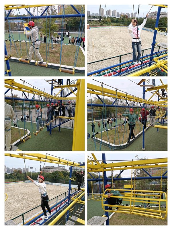 课程伊始,朱秀东老师为同学们详细讲解了课程内容、场地布局、保护措施及动作要领,并亲自示范,确保每位同学都能明确任务,安全参与。同学们全神贯注地聆听,并依次穿戴好防护器材,经老师逐一检查后,满怀信心地投入到活动中。课程中,同学们在使用器材时虽会胆怯,但是没有人选择退出,每个人都完成了本次的课程内容,在一次次挑战中展现出更全新的自己,无不体现了属于年轻人的那股子拼劲闯劲,和年轻的朝气。面对4米高的挑战墙,同学们没有退缩,而是选择团结协作,共同克服难关。在这个过程中,他们学会了如何沟通、如何协作,如何共同面对困难并战胜它。每个人都全力以赴,即使过程中有胆怯和犹豫,也都在团队的鼓励下坚持完成了任务。他们的笑容中洋溢着青春的朝气与拼劲,展现了当代青年的风采。