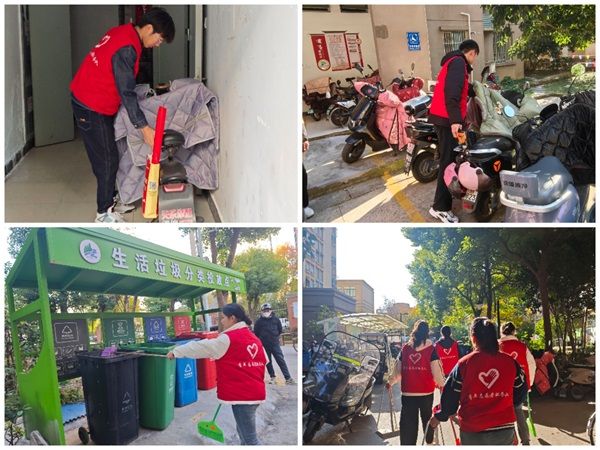 与此同时,另一组志愿者们手持清洁工具,穿梭在社区街巷、楼道。他们清扫路面垃圾,仔细清理卫生死角,不嫌脏累,干劲十足。在大家齐心协力下,社区环境愈发整洁,面貌焕然一新。