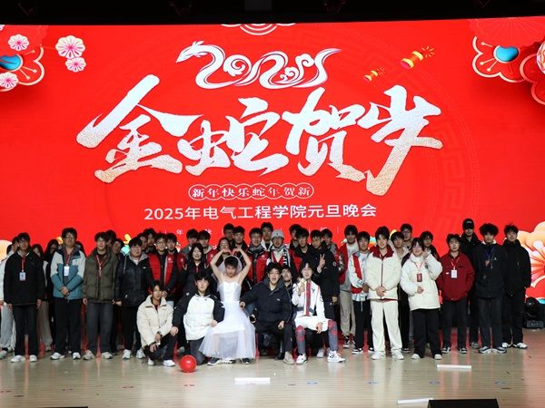 瑞雪飘香庆元旦,欢歌笑语迎新年。为了丰富校园文化生活、增强师生凝聚力,迎接新年新起点。12月29日晚,电气工程学院在大礼堂成功举办2025年元旦晚会,为全体师生观众带来了一个令人难忘的夜晚。本次晚会出席嘉宾有校党委委员、副校长胡凼,电气工程学院院长张信群,继续教育学院院长李永泉,电气工程学院党总支副书记冯早红,电气工程学院团总支书记臧铭。