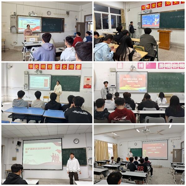 活动期间,各班级团支书精心筹备,通过生动且富有感染力的团课,向同学们全面深入地讲解了总体国家安全观的内涵与重要意义。团支书们借助精心制作的PPT,以图文并茂的方式展示了国家安全所涵盖的各个领域,包括政治安全、国土安全、军事安全、经济安全、文化安全等,让同学们对国家安全有了更为直观、系统的认识。同时,为丰富活动内容、增强同学们的参与感,团支书们还播放了相关视频资料。视频中,真实案例的呈现让同学们深刻认识到国家安全面临的复杂形势和严峻挑战,进一步激发了大家维护国家安全的责任感和使命感。