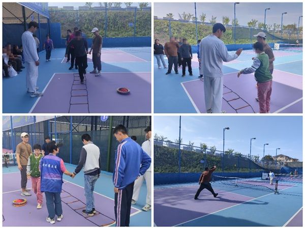 在“听音乐转向”环节,孩子们跟随音乐节奏的变化,灵活调整方向,锻炼反应能力与身体协调性;传统游戏“跳格子”经过改良后,让孩子们在蹦跳中感受游戏的乐趣;新兴运动“匹克球”则成为全场焦点,志愿者们手把手指导孩子们挥拍击球。