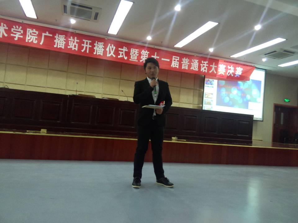 2013年11月13日下午四点,awc777万象城娱乐官网普通话大赛决赛在综合楼大厅顺利举行,机电系杨余峰同学代表我系参加。